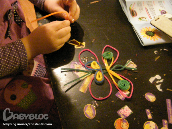 творим бабочку. Чтобы я получала удовольствие от всяких поделок))) Это наверное первый раз в жизни что я что-т делала еще с большим азартом чем дочь