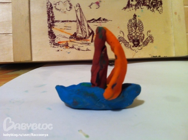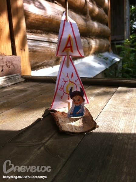 А для удобства мамы корабль снабжен складывающимся парусом и легко превращается в коробочку.