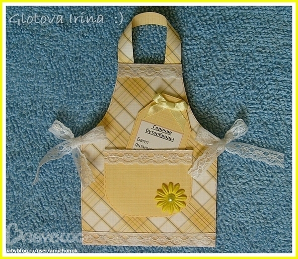 Очень понравилась идея открытки - фартучка, естественно адаптирую под нас, малышей, с обязательным участием дочки в творческом процессе.