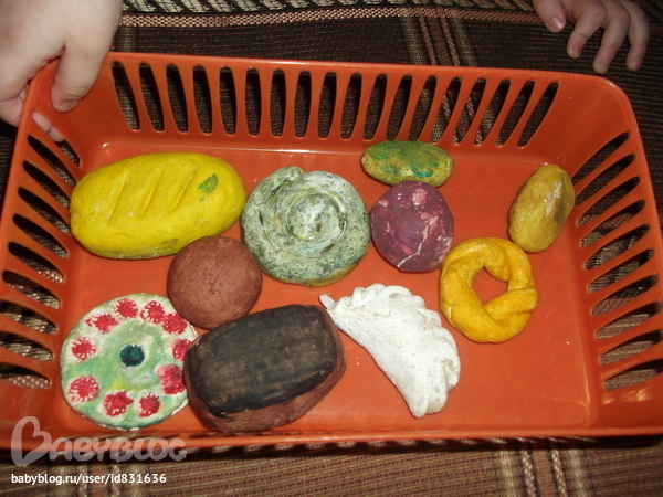 Мы из теста что только не лепим, а уж пирожки и плюшкт святое дело ). Мы с сыном целую коробку в детский сад относили для игры "Кондитерская", кроме булок и пирожков у нас еще были пирожные, торты и пряники. Теперь вот дочку приобщаем. Следущей темой у планируются нас овощи - фрукты )