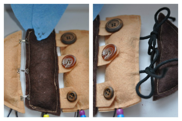 из крепежных элементов -кнопки, крючки, пуговички разных размеров, шнурки