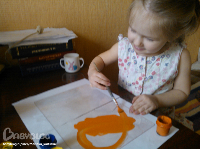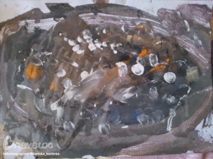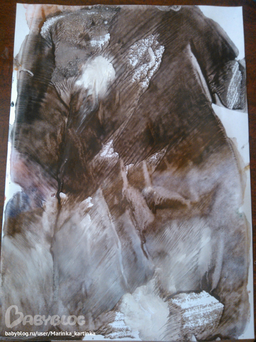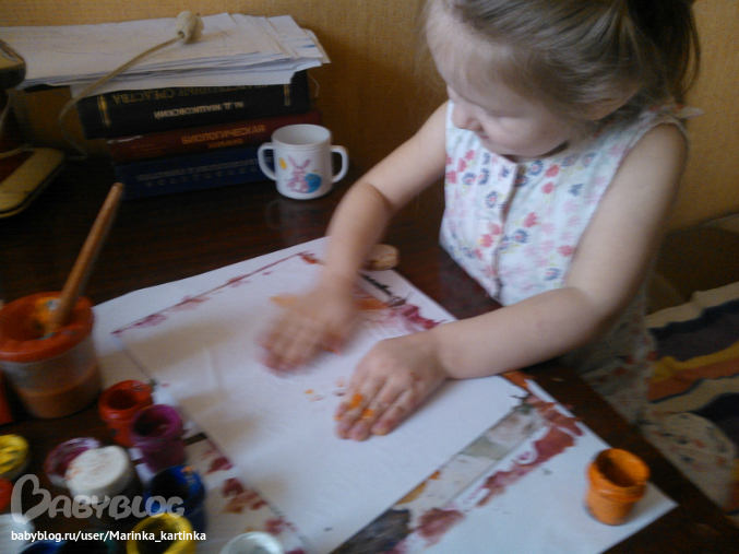 Приложить к ней бумагу и в несколько приемов оторвать. Далее - полет фантазии, можно дорисовывать пальчиками, полосками и прочими фигурами кляксу до определенного изображения.