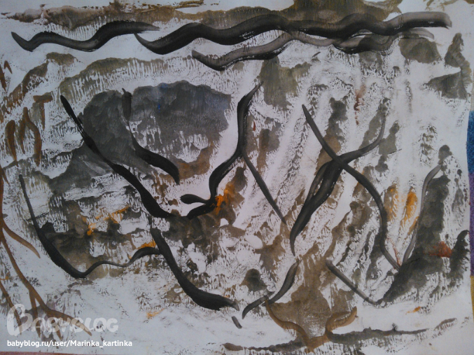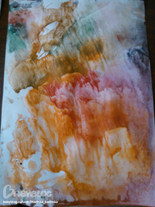 Это уже высохшие картины и дорисованные немного моей рукой. Дочурка лишь говорила что это.