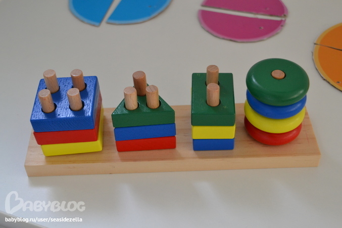 Игрались с сортером, но сыну больше нравится доставать из него детальки, чем вставлять, тугой он какой-то(