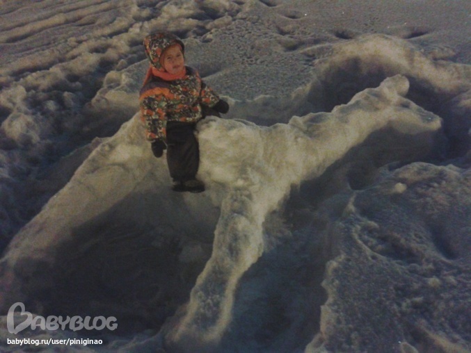 Соня сначала помогает лепить и усердно ковыряет лопаткой снег, и даже приглашает деток с площадки......