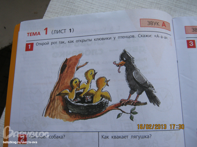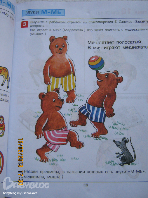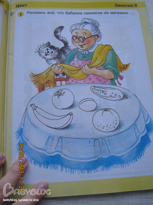 Это тетрадь для развития речи. Как заявляется на обложке от 3 лет, но сыну вот только исполнилось 2,9 и мне кажется многие задания для нас откровенно легкие. Поэтому я бы рекомендовала книжку для детей от 2,5 может даже с 2. Вообще, если малыш уже умеет разговаривать и сносно запоминать потешки-стишки - эта книга подойдет.