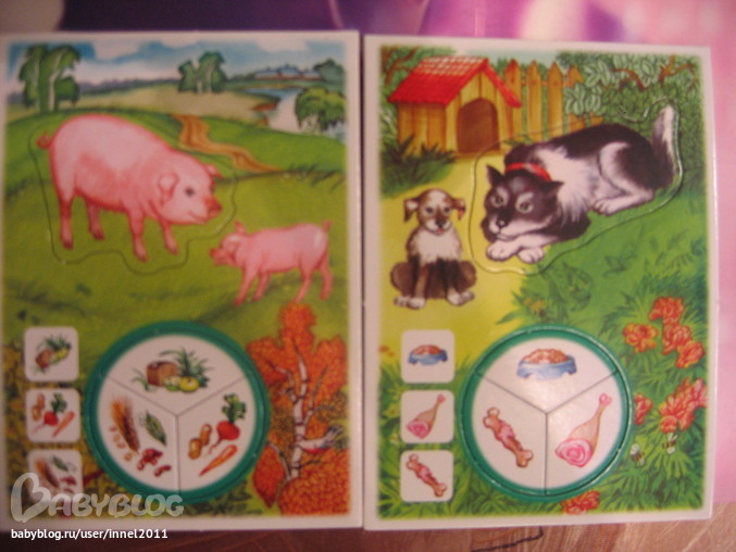 искала специально только с животными и крупное. Купила на Лабиринте.ру, приклеила дополнительный картон для прочности. Мне очень нравятся милые и добрые животные. Играем максимально с двумя игровыми полями, достаю карточку и прошу найти такое же животное на поле