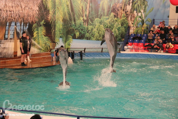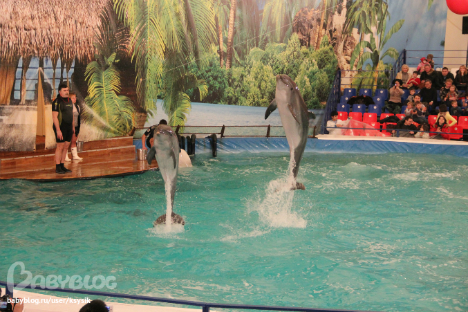 И так дельфинарий. Места вязли на последнем ряду на лестнице))). Очень хорошие места!!! Перед нами ни кого не было, тесно не было))) Кстати, пересаживаться на свободные места не дают. Возле нас мужчина сидел с внучками, пытался пересесть, не пустили)))
