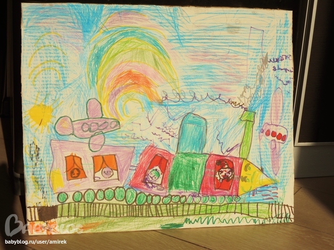 Художка ( красим, рисуем , придумываем новые способы рисовать)У моих любителей паровозов получился настоящая картина. Размер ее примерно 40х50. Сочиняли и рисовали все сами. Единственное фон уже намного помогала им доделать, устали красавицы)))
