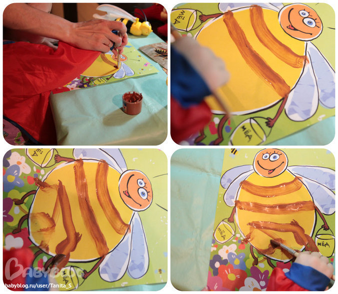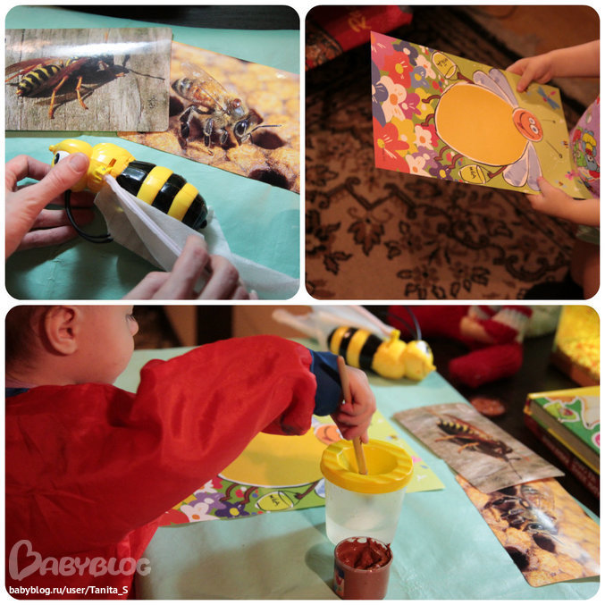 Тут мы готовимся. Рассматриваем полосочки на нашей пчелки, сравниваем с полосками на фотографиях пчелы и осы из , получаем арт-лист с голенькой пчелкой из шедевров.