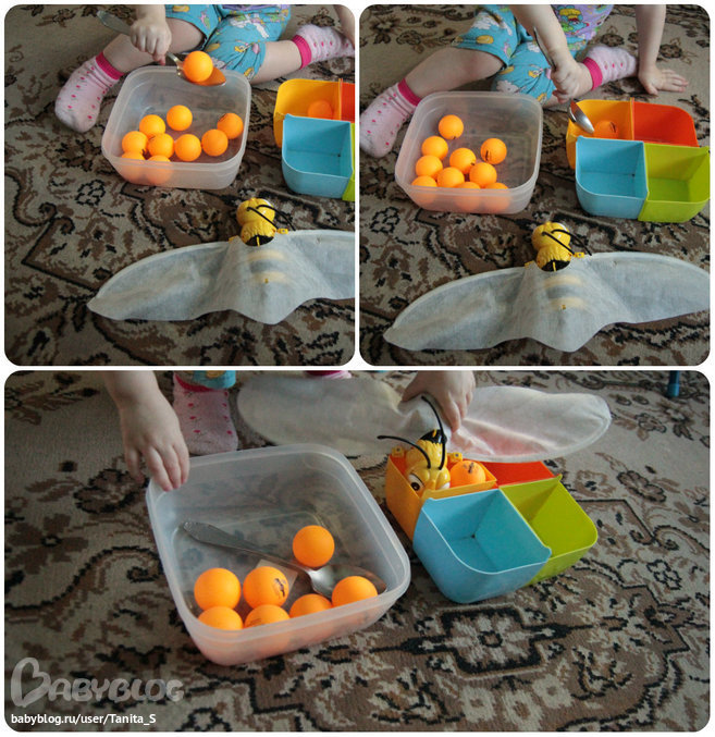Покормили нашу пчелку пыльцой))) Брали теннисные шарики для этого.