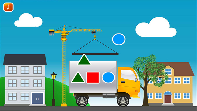 3. Загрузи машинку - ребенку надо загрузить в подъезжающие машины три фигуры (треугольник, квадрат и круг), каждую в свою ячейку.