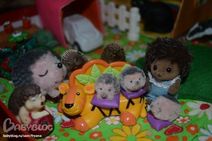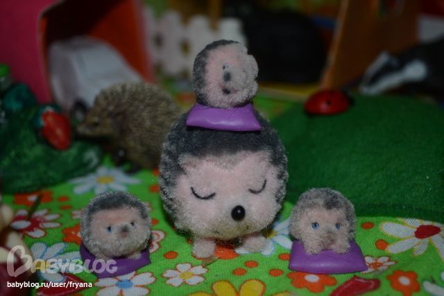 у нас ещё целая пачка плюшевых и резиновых ёжиков :) и главное они все в действии! а ещё мы любители хомячков :) но тут я уже равнодушна, поэтому пока остановимся на ёжиках :)