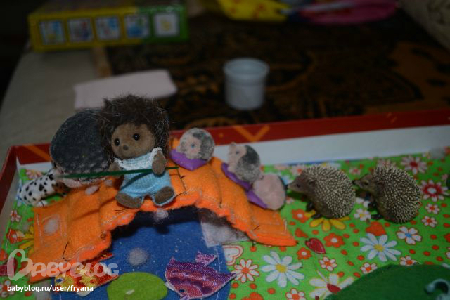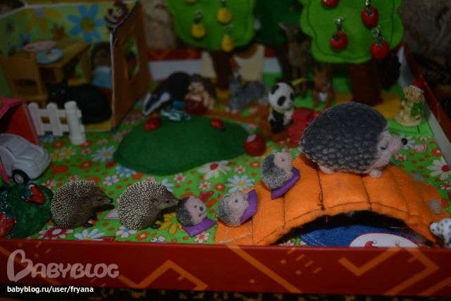 а иногда на нашу полянку приходит снег (в виде ваты), и ёжики спят в сугробах :) запечатлю- ещё напишу про замечательную жизнь ёжиков :)
