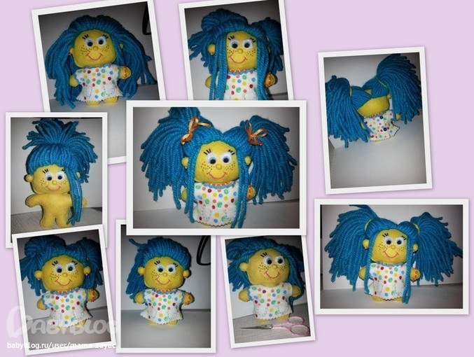 Куколка, была сшита на годик подружке Матевя, как дополнительный подарок. Сшила её на одном дыхании. Получилась она очень милая и маленькая. Ей можно менять прически и снимать платье.