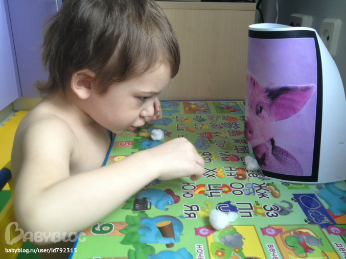Очень полезное занятие, мы тоже так часто играем, когда 1 годик был, начали такого плана занятия, сначала с моей ладошки дул, теперь и на столе играем, можем вместе играть, ставим ворота посередине и дуем туда ватку, позже фото выложу, можно еще привязать бабочек из бумаги к люстре и дуть у кого выше полетит, идей очень много, а главное полезно. Ну и конечно обычные мыльные пузыри