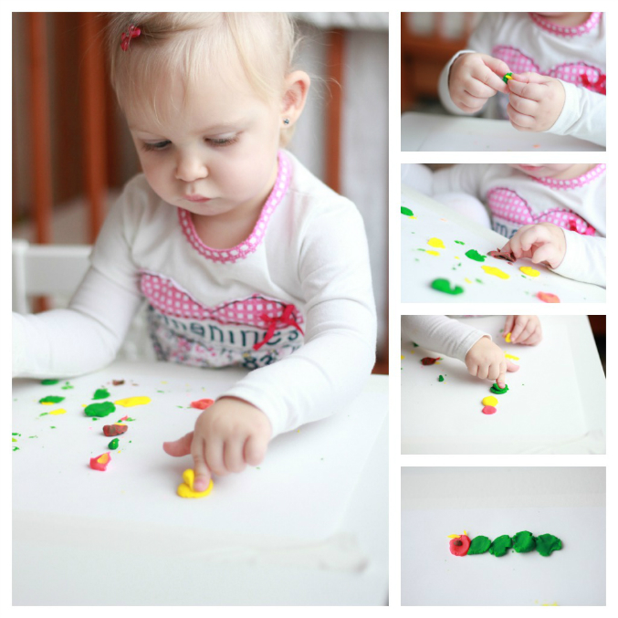 Гусеницу, сделала сама, мама помогла с глазками и усиками. Пластилин ей и обычный нравился, а этот вообще затянул, просидели с ним наверное час!!!