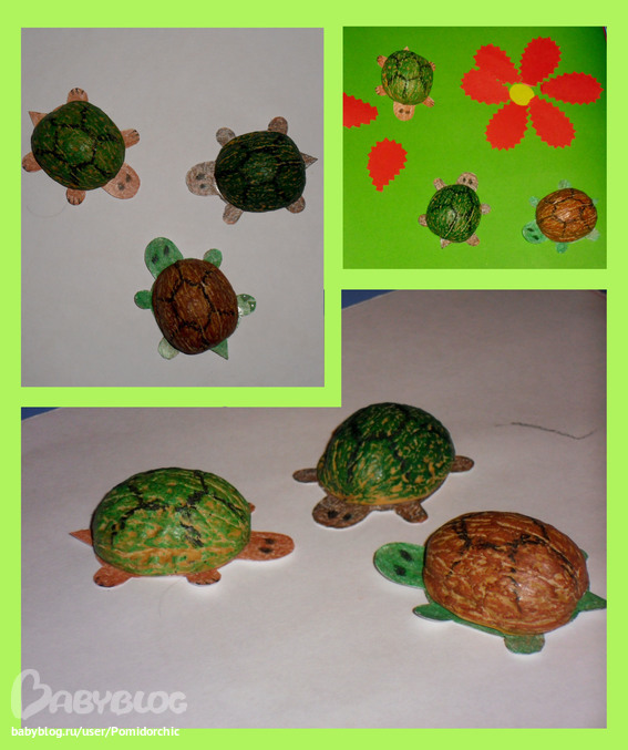 Какие грибочки! Черепашки - просто прелесть!! Мне сразу школа впомнилась, когда делали поделки из желудей, шишек, орехов))))