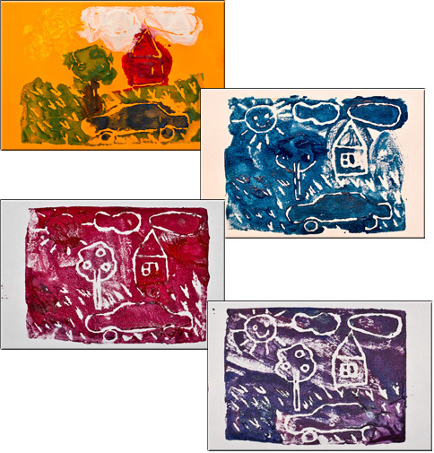 Даем ребенку краски, ребенок малюет картину, прикладывает чистый лист бумаги, прижимает рученками, иииииииииииииииииииии :