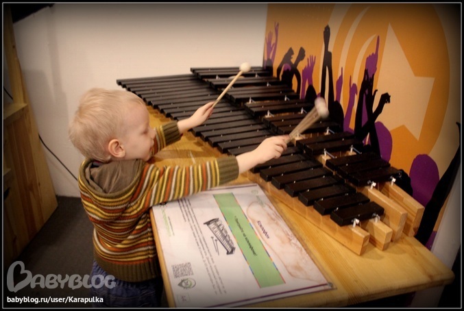 В акустическом зале тоже есть много интересного. Помимо этого ещё конструкция из сантехнических труб, выдающая настоящие басовые звуки, настоящая электрогитара и др.