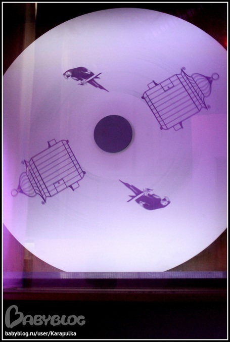 Диск с двумя клетками и двумя птичками. Подходишь, включаешь мотор, диск начинает бысро крутиться и создаётся впечатление, что птичек много и все они сидят в клетках.)