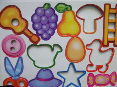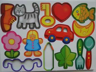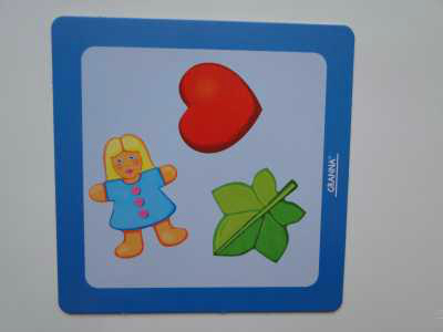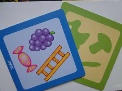 Девять двухсторонних карточек, 27 фигурок, есть еще фишки и мешочек для игры. В правилах этого нет, но само напрашивается использовать игру как вкладыши. Картон настолько плотный(около 3 мм.), что даже малыш лет полутора его вряд ли испортит. Если только погрызет по недосмотру)))