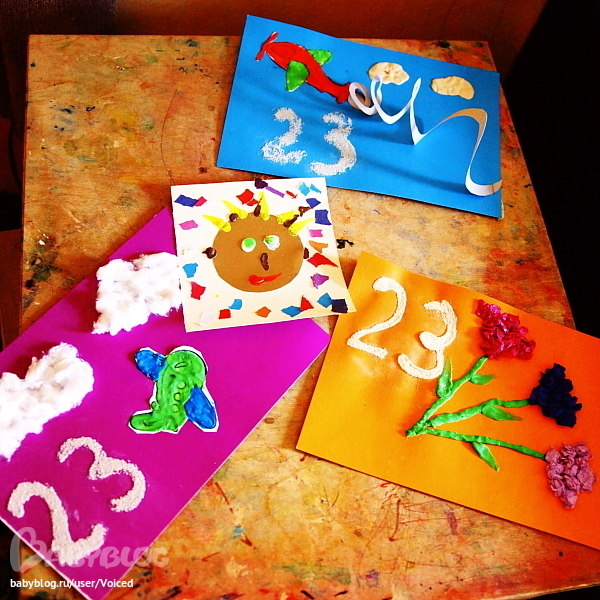 Мистер Умелец или Очумелые ручки (поделки, аппликации, интересные находки, идеи и задумки)в честь праздника мама замучила главного защитника аппликациями. под конец, посыпая манкой шестую по счету цифру, Андрюха уныло завыл на мотив "микки маус-клуба": "посмотрите кто здесь - это двадцать три!"