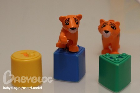 Я разложила перед ребенком три формы. Называла фигуру, и наш тигр должен был прыгнуть на эту фигуру. Ребенок справился отлично.