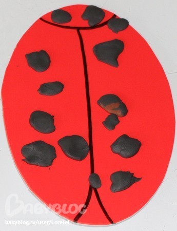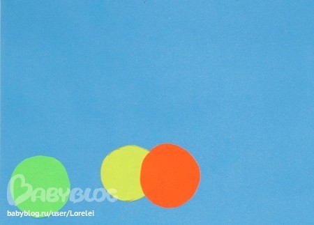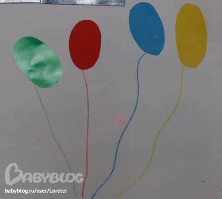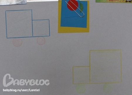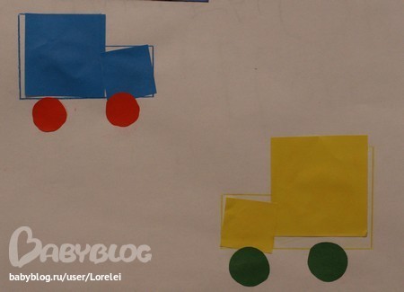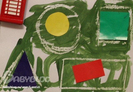 При наклеивании, я проговаривала фигуры, их цвета и размер.