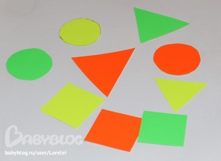 Я старалась давать фигуры в базовых цветах, чтобы можно было параллельно запоминать цвета.
