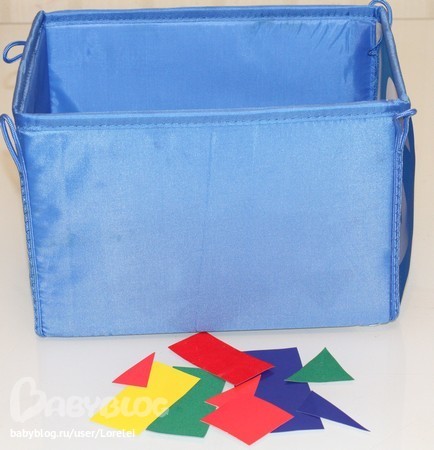 Я вырезала разные фигуры, разложила перед ребенком и попросила выбрать только прямоугольник и положить в прямоугольную коробку:
