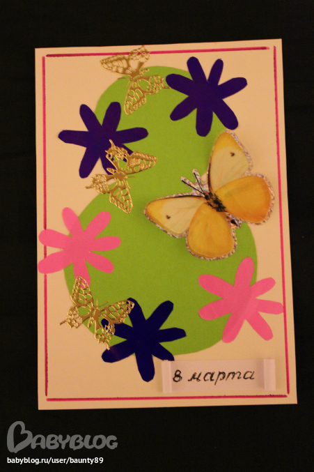 Молодцы!!!! Очень красивые открытки! Мы тоже готовимся активно. Но пока с Ником ,как обычно. С Дашей открытки будет позже делать. Меня сейчас прет на бабочки со страшной силой)))