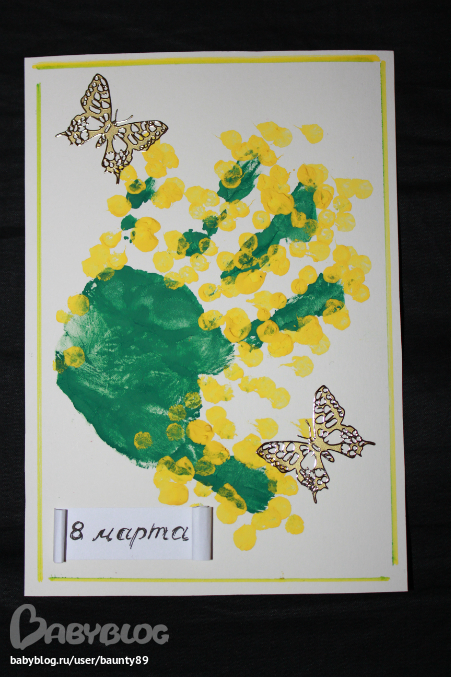 Мимоза!!! Тоже ватные палочки! Уж очень полюбили мы ими рисовать!!