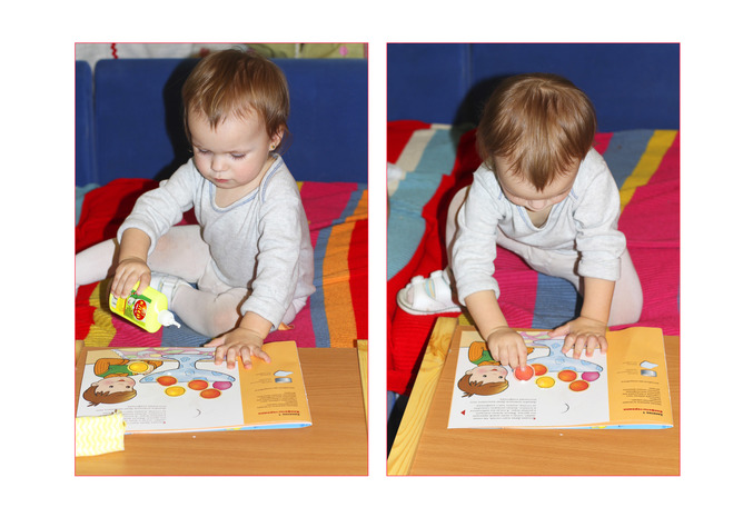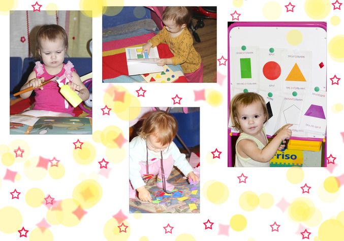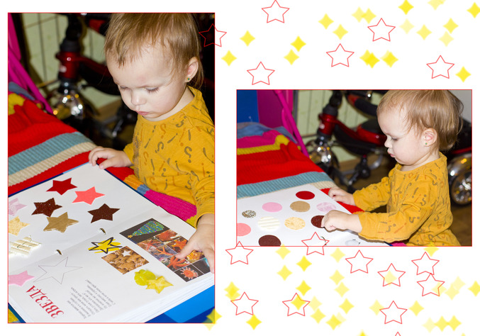 Немножко занимались с Земцовой Цвета и формы с наклейками.