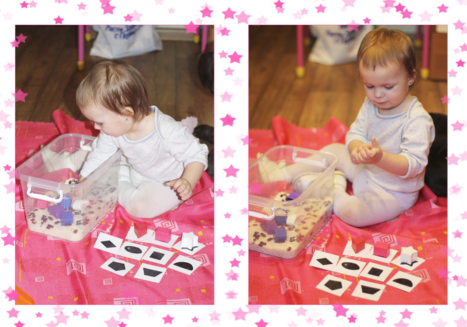 3. Сенсорная коробочка - все очень прозаично - рис с фасолью и всякие разные фигурки из неочень любимого и не удобного сортера) Сделала для фигурок лото с тенями,заламинировала скотчем. Аришка обрадовала меня, поняв наконец-то принцип лото ( до этого с лото как-то не шло).