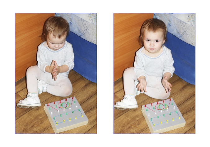 и "Это может Ваш малыш" еще из серии "Это может Ваш малыш" пробовали делать задание с палочками - треугольный колпачок мальчику, но как-то не пошло(