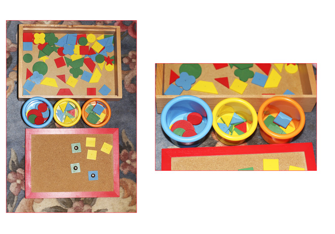 Карточки Цвет и форма - мы их заламинировали и поочередно, по мере изучения добавляли на нашу магнитную доску) (Аришка каждое утро находила карточки с изображением фигуры вместе с подушкой одноименной формы в своем "почтовом ящике")