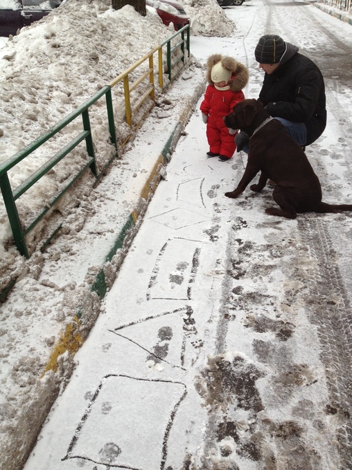 Аришка так полюбила фигурки. что даже на улице требовала меня их рисовать)