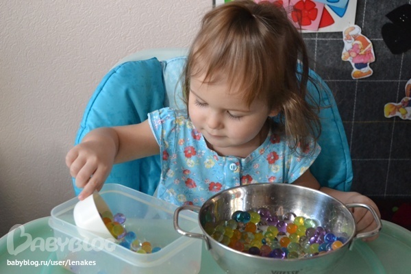 Попозже вспомнили, что у нас есть еще и гидрогелевые шарики, так что поиграли и с ними.