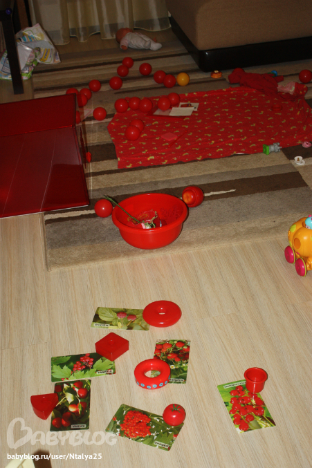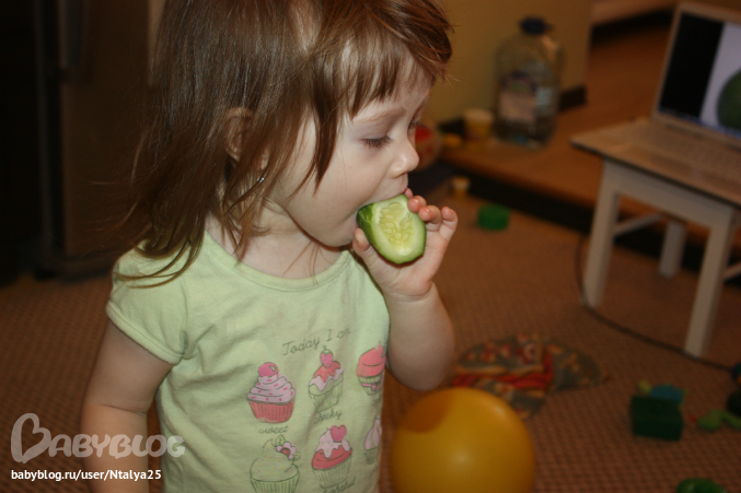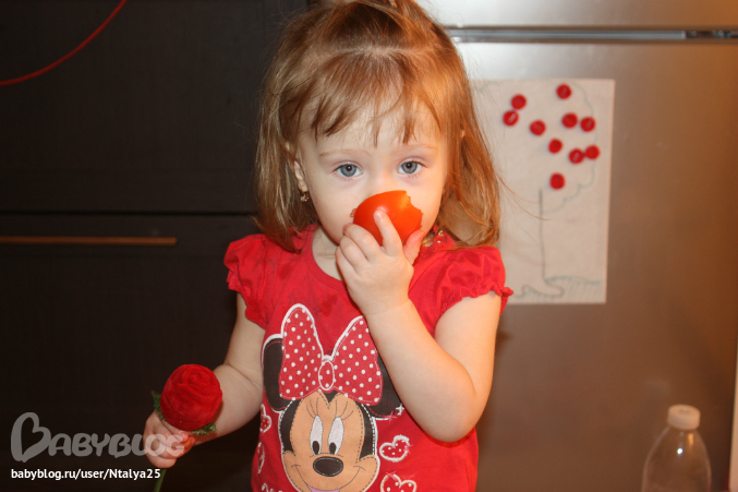 Весь день мы питались исключительно красными помидорами) Только я начинала говорить про красный цвет, настя бежала к холодильнику и просила помидорку)