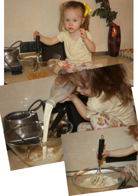 Муку мы в воронку не стали сыпать, а сыпали себе между пальцев ног. Я уже просто смотрела как разыграется ее фантазия, потому что по моим правилам мы уже не играем)))