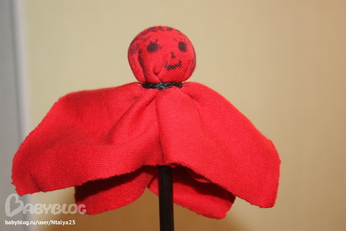 За 2 минуты сделала такую куколку, которая играла только с красными предметами и помогала нам изучать цвет) Jна не произвела огромного интереса у Насти(