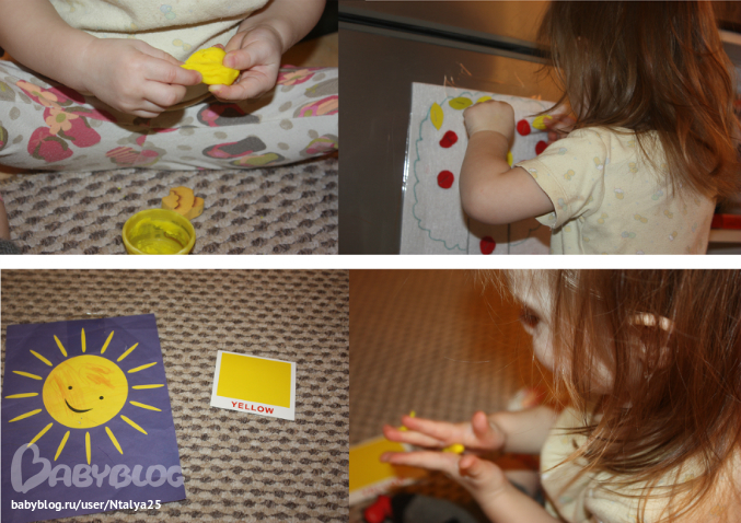Пыталась обратить ее внимание на цвета и как то заинтересовать.