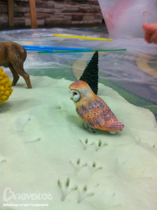 Очень понравилось играть со следами животных, Богдан был следопытом, узнавал по следам какое животное куда спряталось))