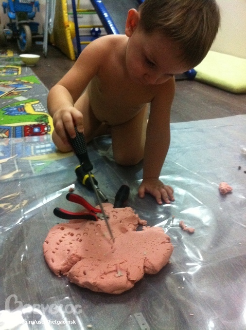Инструментам всегда находится применение)) Кстати, розовый пластелин по другому рецепту, видно какие у него грубые края, а у нашего любимого совсем другие!!
