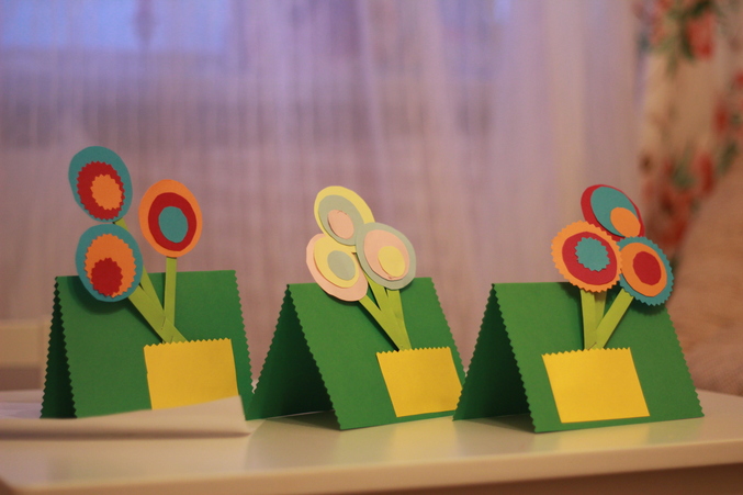 Мистер Умелец или Очумелые ручки (поделки, аппликации, интересные находки, идеи и задумки)Мы решили подготовится к 8 марта, тк у мама может отсутствоовать в эти дни. Вот такие открытки у нас получились. Цветы Тори клеила сама, надо было только показывать куда клеить, я только в этот раз вырезала и мазала клей, а остальное она сама. Специально выбрали легкую аппликацию.
