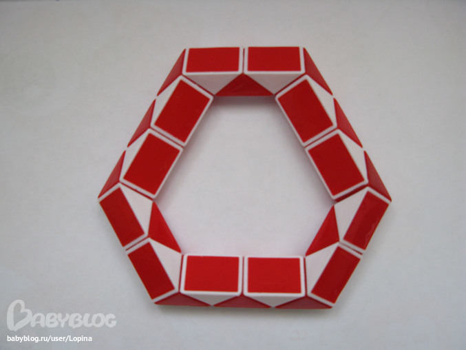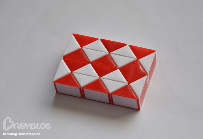 Каждый день придумывает что-то новое. Последние два дня любит собрать какую-нибудь фигуру и спросить, гда она закончила, т.е. куда она вложила хвостик "змейки". Например, по этому прямоугольнику сразу и не поймешь, где загнулся хвостик:)))