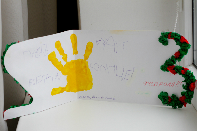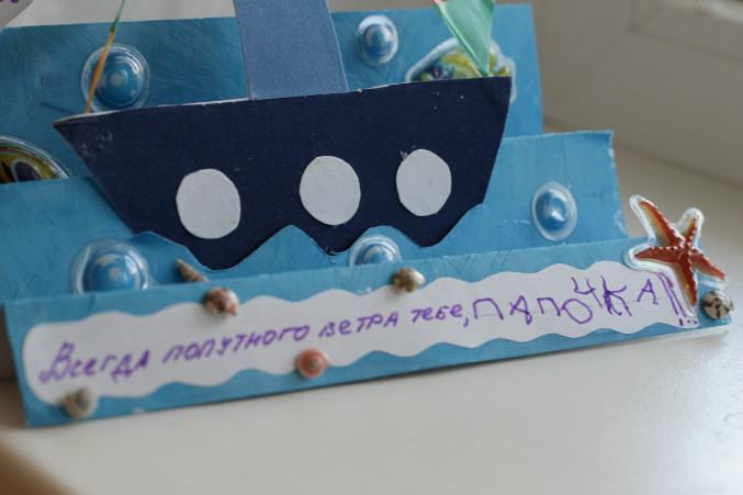 ну мы подарили папочке нашему то, что Егорка сделал в школе. На другие открыточки нас не хватило(