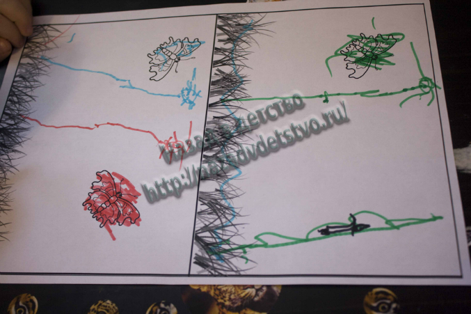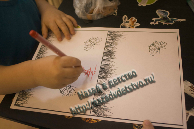 Именно эти главные герои были участниками наших заданий. Вскользь мы еще упомянули сверчка, блоху, богомола, клопа и некоторых других. У нас есть карточки с насекомыми, вот на них и ориентировались в первый день, а потом расставили приоритеты и оставили только вышеперечисленных