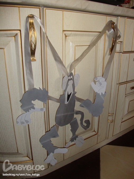 Ролевые игры. Кормили игрушечную обезьянку за столом с ложки. Играли в марионетку. Лучше бы, конечно, ее было сделать цветной, но принтер как всегда невовремя сломался. Мы с нашей подружкой здоровались и прощались, она нам отвечала маханиями лап и танцами.